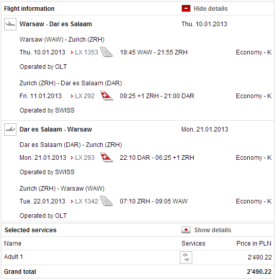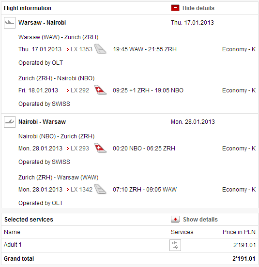 Po drodze w każdą ze stron mamy przesiadkę w Zurychu.