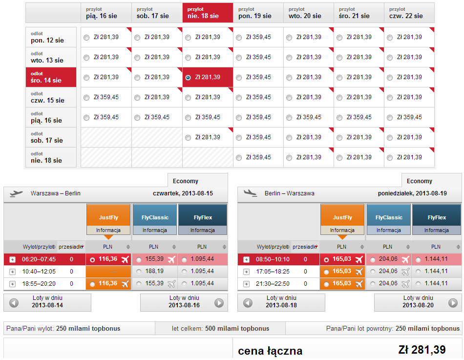 Za loty w najtańszej taryfie do Berlina zapłacimy: z Gdańska 272,22 PLN, z Krakowa 278,39 PLN, a z Warszawy 281,39 PLN
