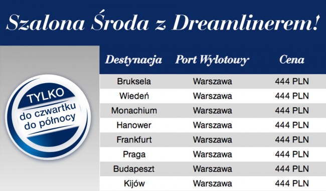 LOT dał w promocji tylko kilka kierunków – te europejskie miasta, do których będzie latał Dreamlinerem celem jego promowania.