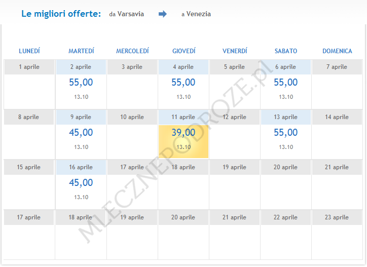 Obecnie najbliższy lot do Wenecji na tej trasie jest zaplanowany na 2 kwietnia 2013.