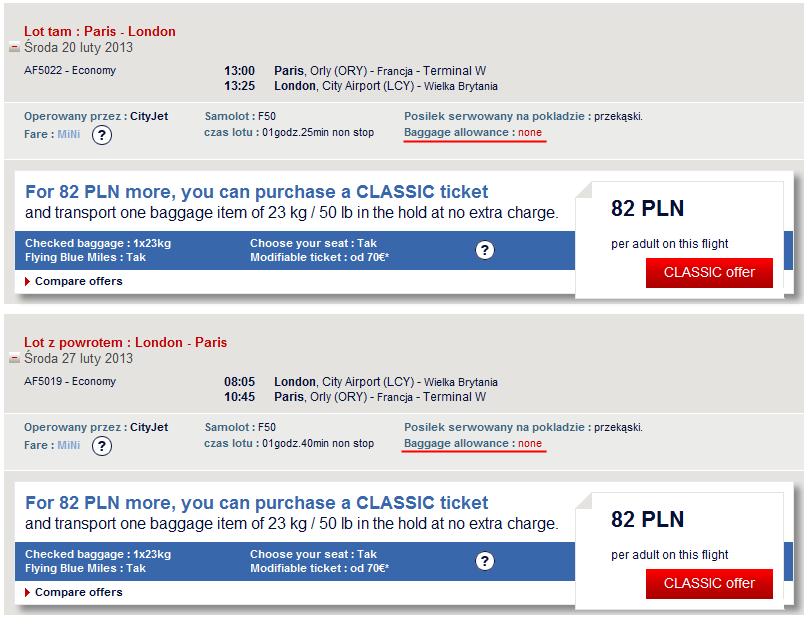 Bilety w taryfie MINI są o 82 PLN (20 EUR) tańsze niż w standardowej taryfie CLASSIC.