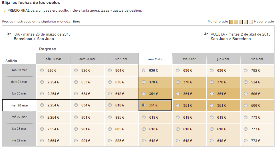 Loty w tej cenie znajdziemy na przełomie marca i kwietnia 2013.