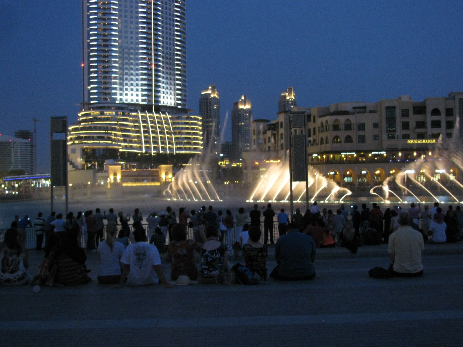 Dzień kończymy oglądnięciem kilkuminutowego pokazu fontann, tuż obok Dubai Mall: