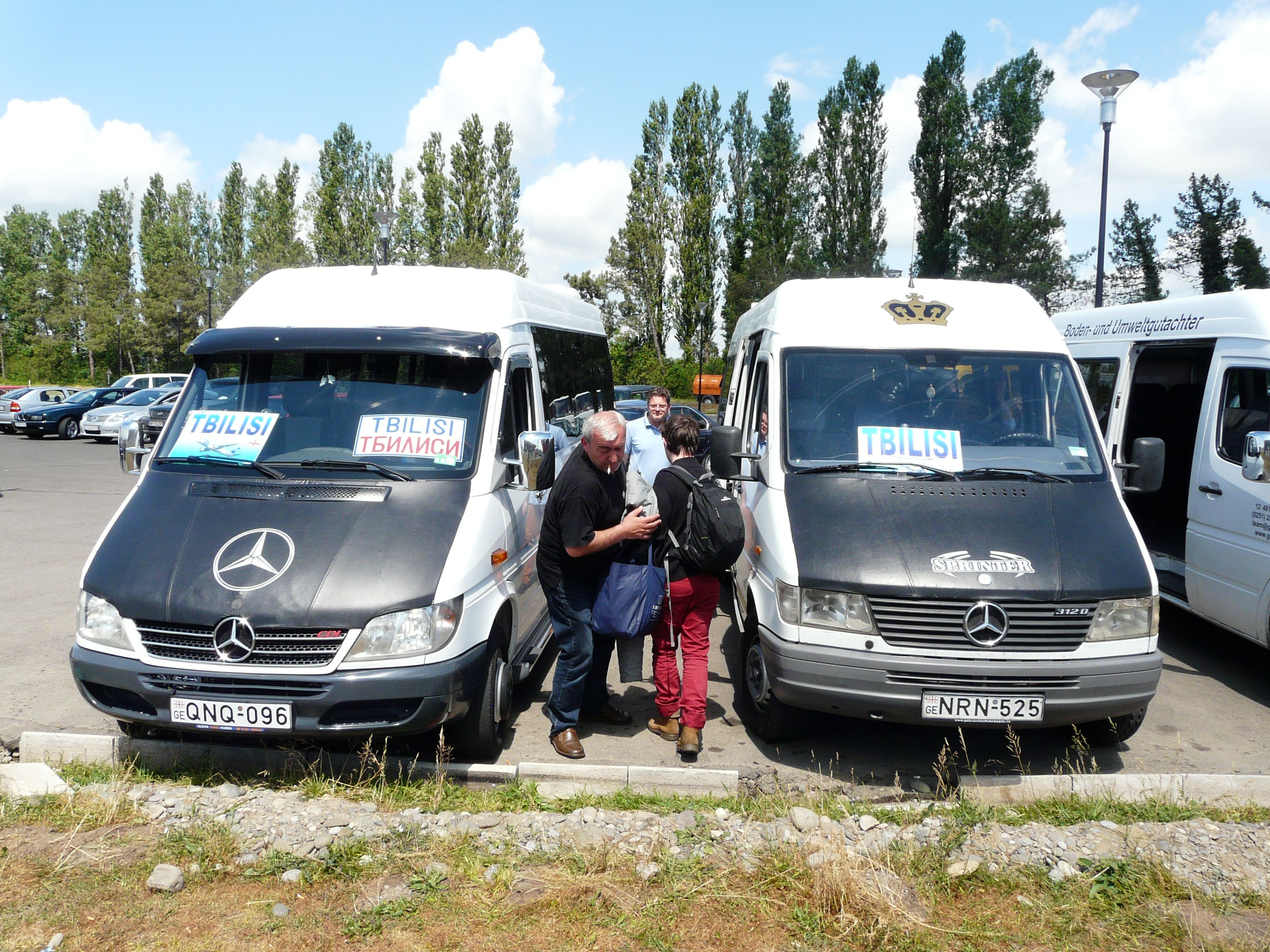 Jeszcze na hali przylotów atakując nas naganiacze z marszrutek i taksówek. Cena za kurs do Tbilisi jest jedna i ustalona (ale i tak polecamy się spytać najpierw o cenę) – wynosi ona 15 lari/10 USD/7.5 EUR (czyli ok 30 PLN)