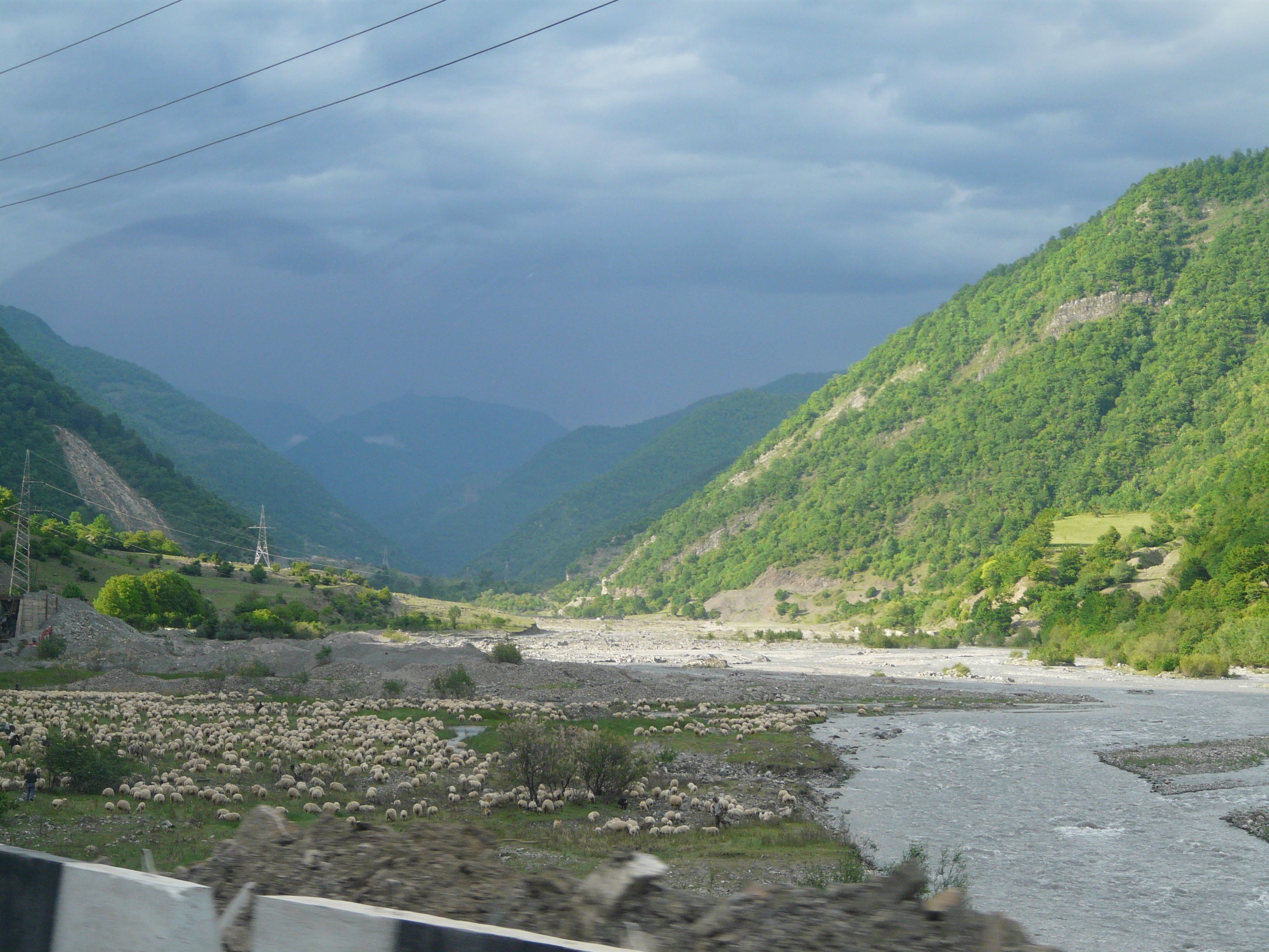 Około godziny 17 Gruzińską Drogą Wojenną ruszamy do Kazbegi. Ponieważ jedziemy „zwykłą” marszrutką, to nie zatrzymujemy się przy poszczególnych atrakcjach itp. tylko jedziemy przed siebie rozglądając się w koło, bo tak pięknie.