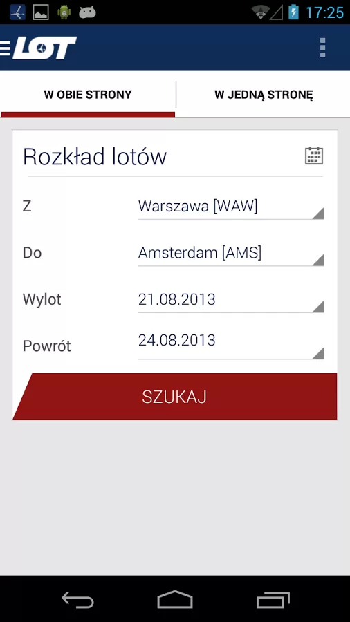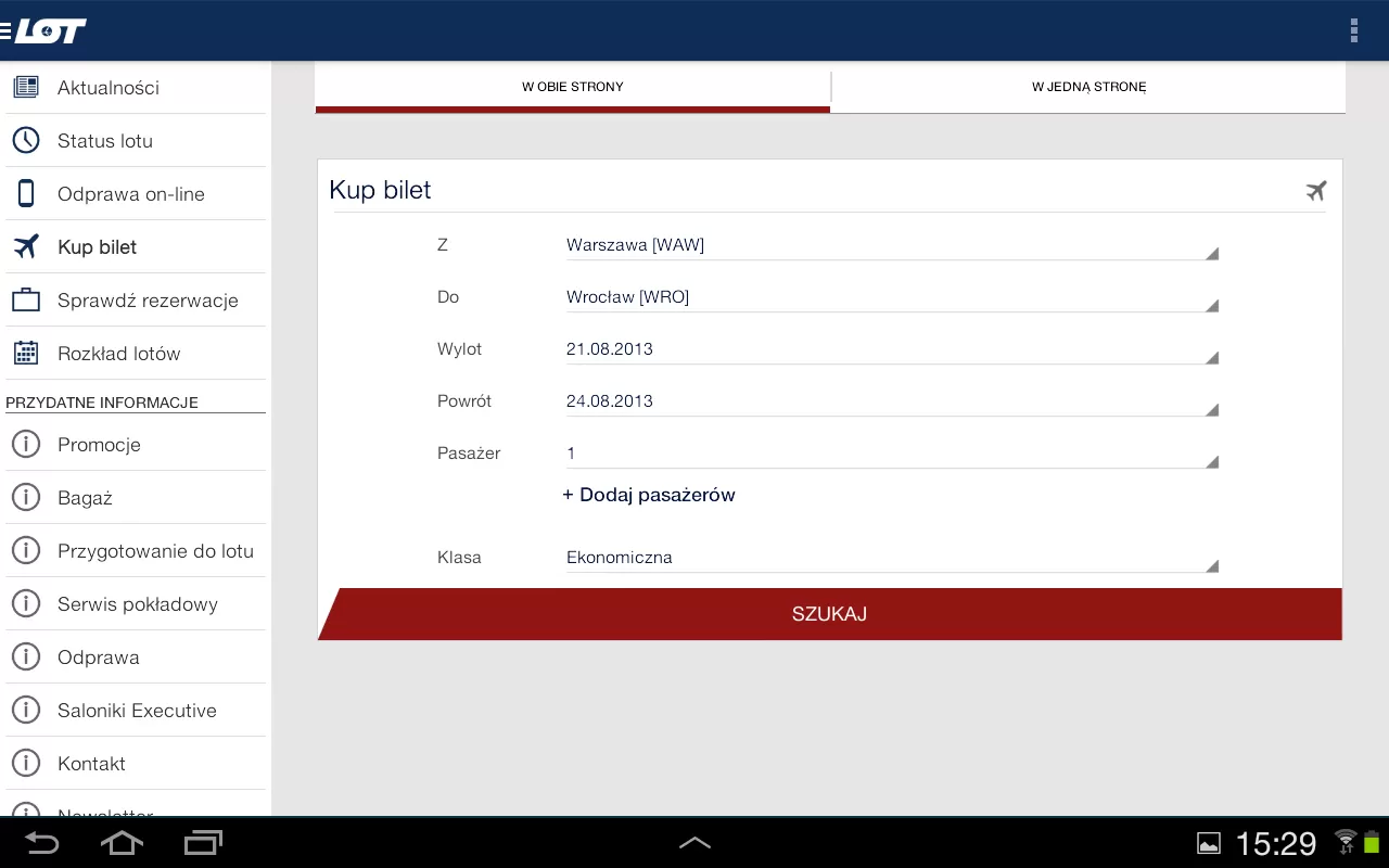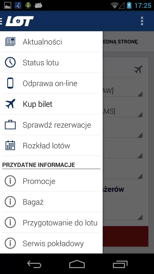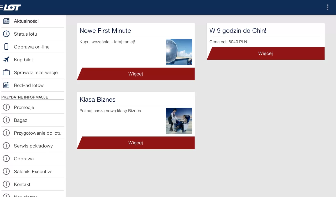 Aplikacja jest dostępna na urządzenia z systemem Android oraz iOs, a strona m.lot.com działa w każdej przeglądarce :)