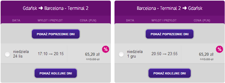 - Gdańsk – Barcelona za 130,40 PLN w dwie strony