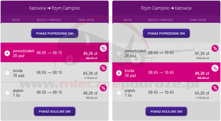 - Katowice – Rzym Ciampino za 98,40 PLN w dwie strony