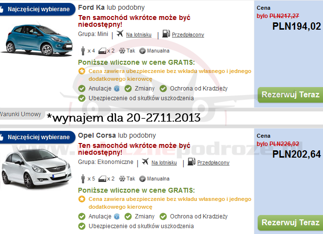 Za wynajem auta zapłacimy niecałe… 28 PLN/dobę! Tanie noclegi znajdziecie na TanieHotele.be