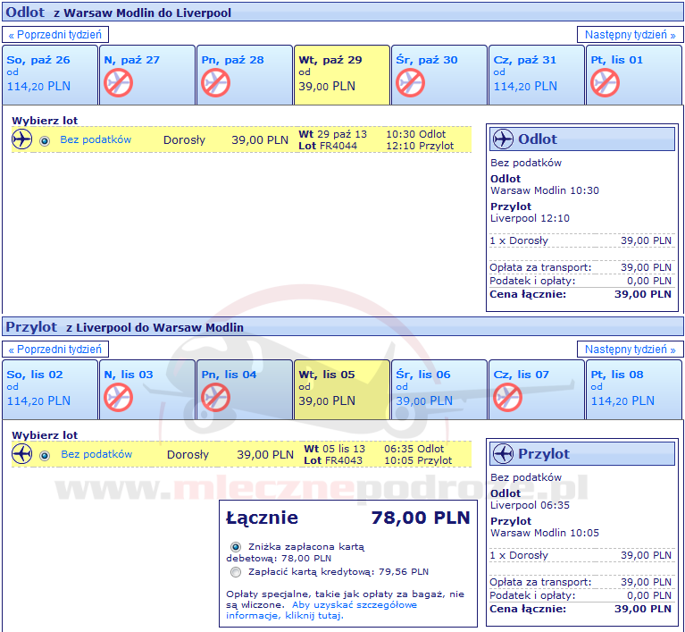 Liverpool –> Warszawa Modlin (przeloty Ryanair)