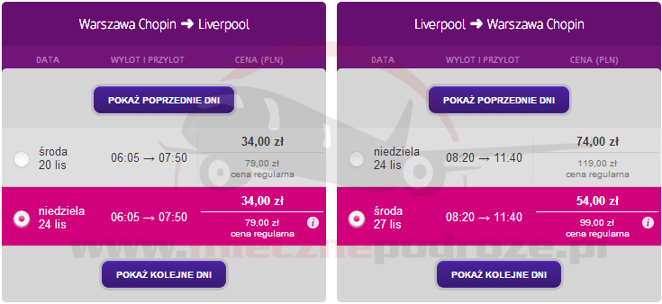 Liverpool –> Warszawa Chopin (przeloty Wizz Air)