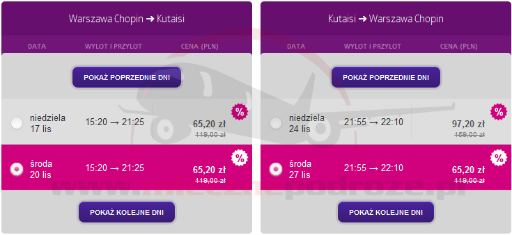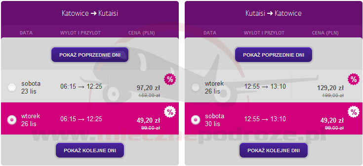Korzystając z dzisiejszej zniżki w Wizz Air możemy kupić tanie loty z Polski do Kutaisi w Gruzji. Za przeloty z Katowic do Gruzji zapłacimy od 98,40 PLN, a z Warszawy od 130,40 PLN w dwie strony!