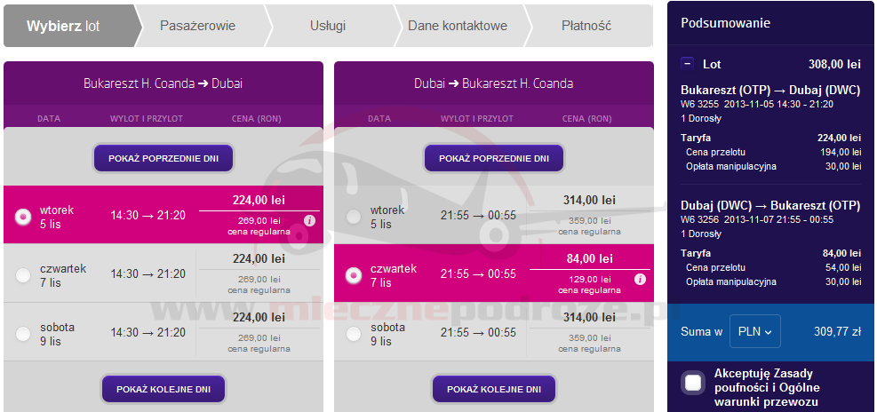 http://www.mlecznepodroze.pl/2013/10/02/wizz-air-z-bukaresztu-do-dubaju-od-310-pln/