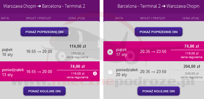 13.01.2014: Warszawa Chopin – Barcelona El Prat 16:55 – 20:00, 74 PLN