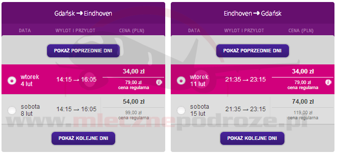 Korzystając z dobrej oferty cen w Wizz Air można kupić tanie loty z Polski do Eindhoven. Za przeloty zapłacimy od 68 PLN za przeloty Wizz Air. Można też wykorzystać te loty i prosto z lotniska pojechać do Amsterdamu.