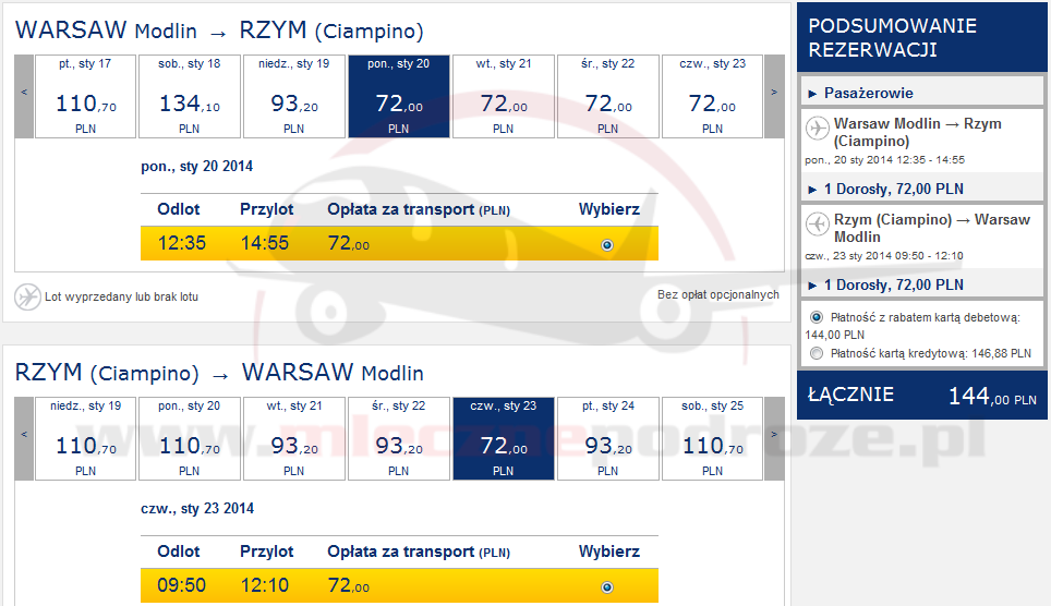 Rzym Ciampino –> Warszawa Modlin za 72 PLN