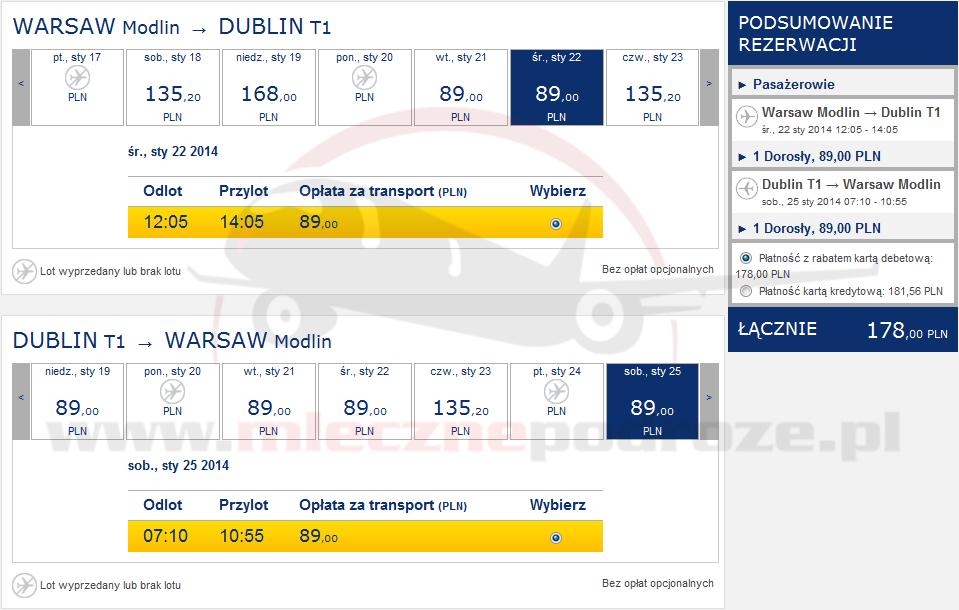 Dobra okazja na tanie loty do Irlandii! Za przeloty z Modlina do Dublina zapłacimy od 178 PLN w dwie strony! Aby kupić bilety nie musimy należeć do żadnego klubu, podróżujemy też z „normalnym” bagażem podręcznym.