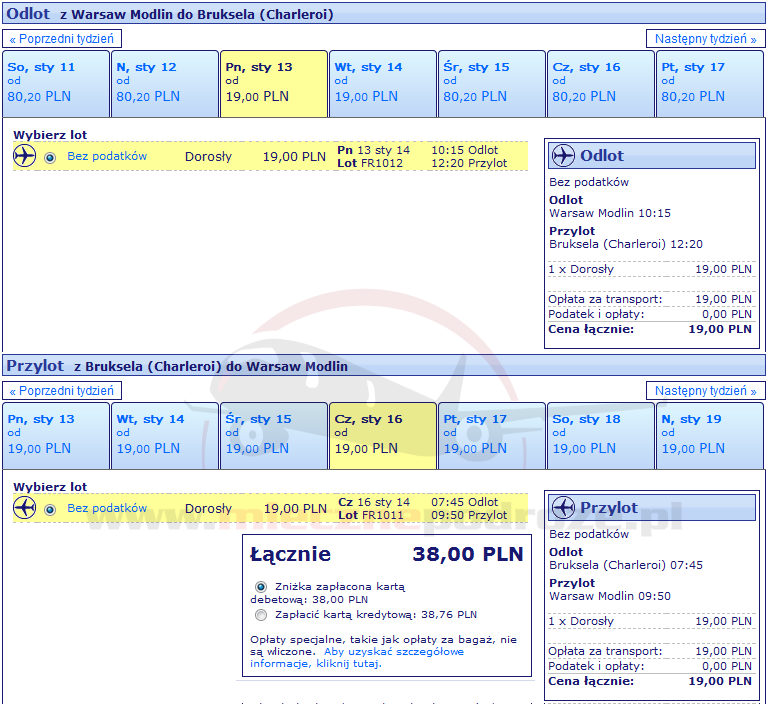 Warszawa/Modlin –> Bruksela Charleroi za 19 PLN