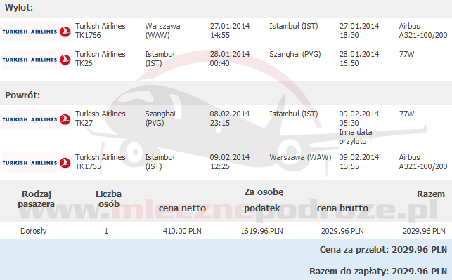 Loty w tej i zbliżonej cenie kupimy w terminach od grudnia 2013 do kwietnia 2014.