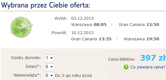 10.12.2013 Gran Canaria – Warszawa 13:35 – 19:50