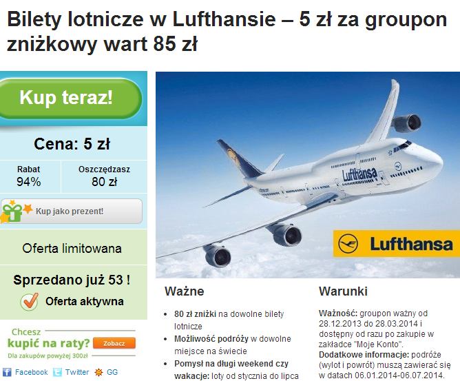 http://www.mlecznepodroze.pl/2013/12/27/groupon-lufthansa-i-80-pln-znizki-na-loty/