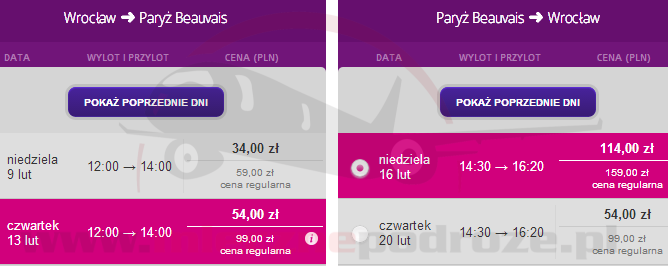 16.02.2014 Paryż Beauvais – Wrocław 14:30 – 16:20, 114 PLN