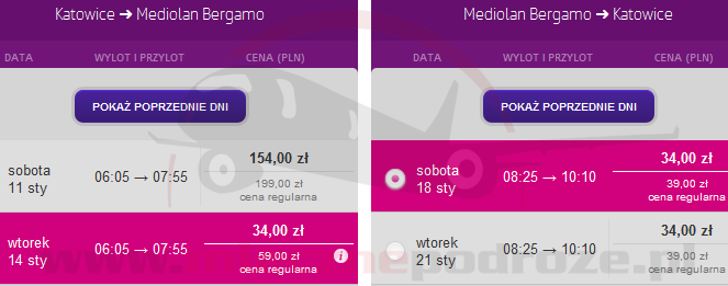Jeszcze jedna okazja na tanie przeloty do Bergamo. W Wizz Air za loty z Katowic do Bergamo zapłacimy od 68 PLN w dwie strony. A za 30 PLN więcej dostaniemy się prosto z lotniska do Mediolanu.