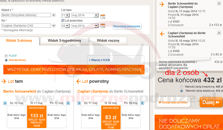 Przykładowe ceny: Bazylea z Krakowa od 94 PLN, Sardynia z Berlina za 216 PLN, Ateny za 245 PLN i inne