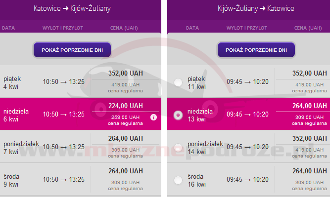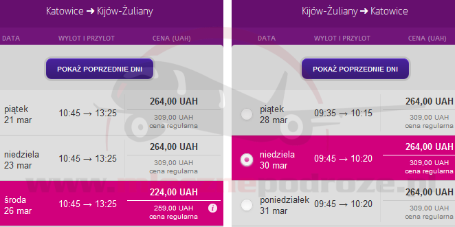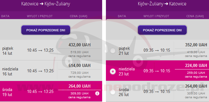 W tej cenie znajdziemy kilka terminów od lutego do kwietnia 2014. Loty obsługuje Wizz Air Ukraina, a w cenę biletu mamy wliczony także przewóz bagażu rejestrowanego!
