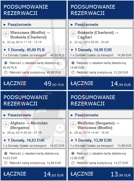 22.01.2014 Bruksela Charleroi – Cagliari (CAG) 20:55 – 23:20, 14.99 EUR / 62.50 PLN