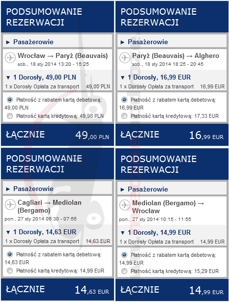 18.01.2014 Paryż Beauvais – Alghero 18:25 – 20:45, 16.99 EUR / 71 PLN