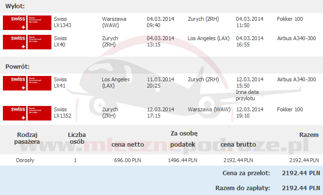 - Warszawa – Los Angeles od 2192 PLN >> empiktravel.pl | tripsta.pl | flipo.pl | Swiss.com
