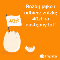 Wielkanocna promocja na Tripsta.pl. Z okazji świąt serwisu oferuje nam 40 PLN na rezerwację dowolnych lotów dostępnych w serwisie. Rezerwacji możemy dokonać na stronie Tripsta.pl