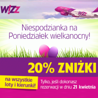 Wielkanocna promocja -20% w Wizz Air. 21 kwietnia wszyscy będą mogli kupować bilety z dodatkowym 20% rabatem. Członkowie Wizz Discount Club za najtańsze loty zapłacą już od 33,20 PLN w jedną stronę!